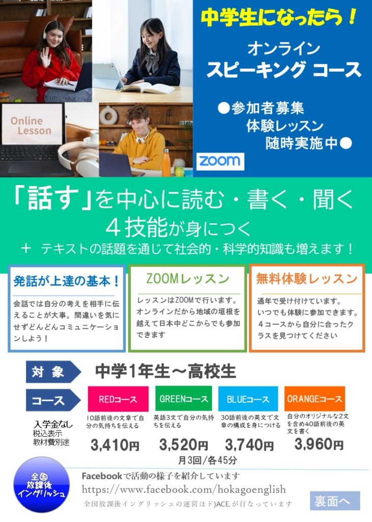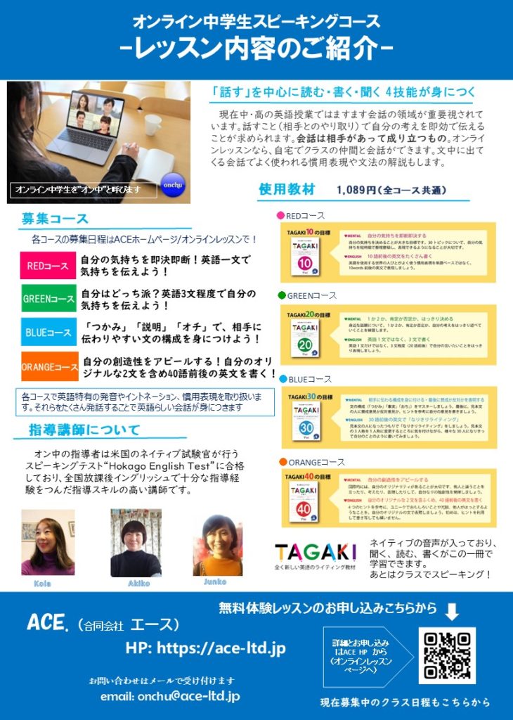 ”オン中”とは中学生~高校生のオンライン英語コースのことです。